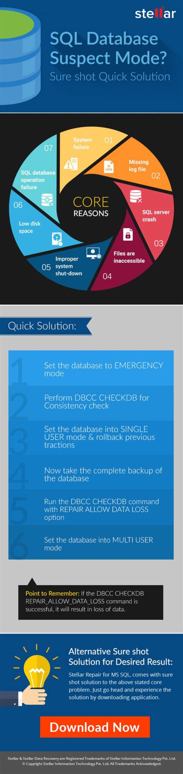 Know-How to Change Suspect Mode to Normal Mode Terminate the suspect flag on the database and set it on Emergency mode. Play out the function Consistency Check on Master Database. Bring database into Single User Mode, and afterward perform rollback activity of past transactions. Take the backup of the whole database.