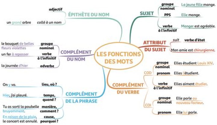 Il répond à la question qui est-ce qui ? / qui ? (pour les animés) et qu’est-ce qui ? (pour les inanimés). Exemples : Je parle ! : Qui est-ce qui parle ? => Je.Quelles sont toutes les fonctions des mots ?