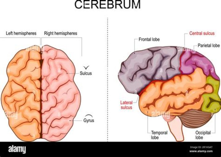 The cerebral hemispheres are divided right down the middle into a right and left hemisphere. … The right side of the brain controls the left side of the body and the left side of the brain controls the right side of the body. (damage to one side of the brain is going to impact the opposite side of your body.