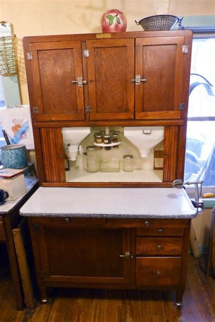 Emma Terry Hoosier cabinets were more than just a cabinet; they were a must-have in most homes. The cabinets not only stored kitchen staples like flour and sugar, they also held workable utensils inside. Most Hoosier cabinets housed flour sifters, Lazy Susans for spices, bread boxes, and even meat grinders.