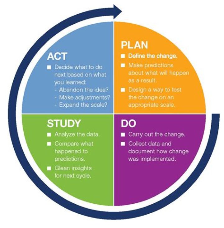 The PDSA cycle is shorthand for testing a change by developing a plan to test the change (Plan), carrying out the test (Do), observing and learning from the consequences (Study), and determining what modifications should be made to the test (Act).