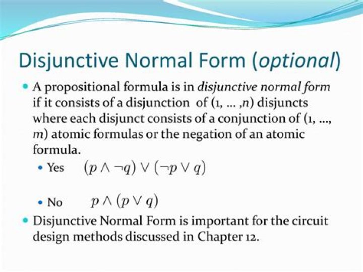 What is disjunctive normal form with example? In boolean logic, a disjunctive normal form (DNF) is a canonical normal form of a logical formula consisting...