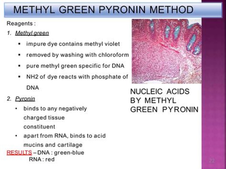 What does methyl green Pyronin stain? The methyl green – pyronine stain enables both DNA and RNA to be detected. Methyl green and pyronine are basic dyes ...