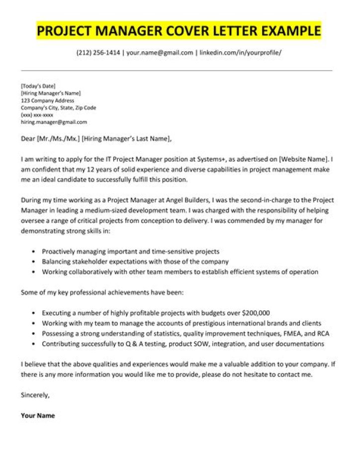 How do I write a cover letter for a project manager? To write an outstanding Project Manager cover letter, follow these steps: Review the job posting. Res...