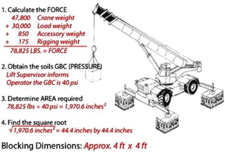 How are outrigger loads calculated for cranes? Simply divide the maximum outrigger load by the allowable ground bearing pressure to determine the pad area...