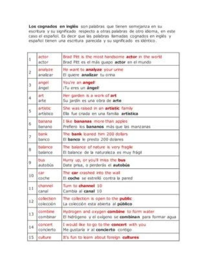 Los cognados verdaderos son aquellas palabras que son escritas de la misma forma o similar o suenan igual o se asemeja en dos idiomas diferentes y que